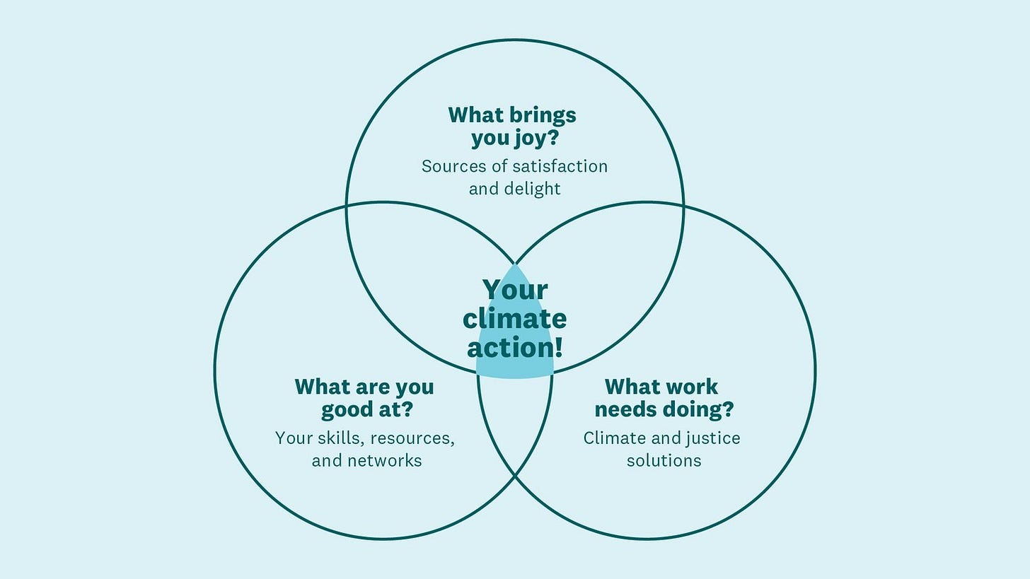 Dr. Ayana Elizabeth Johnson (marine biologist, policy expert, and leader in the climate communications world) details a beautifully simple roadmap for anyone to find their role in the climate movement, which she coined the Climate Venn Diagram: