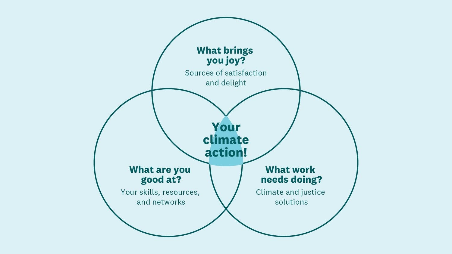 Dr. Ayana Elizabeth Johnson (marine biologist, policy expert, and leader in the climate communications world) details a beautifully simple roadmap for anyone to find their role in the climate movement, which she coined the Climate Venn Diagram: