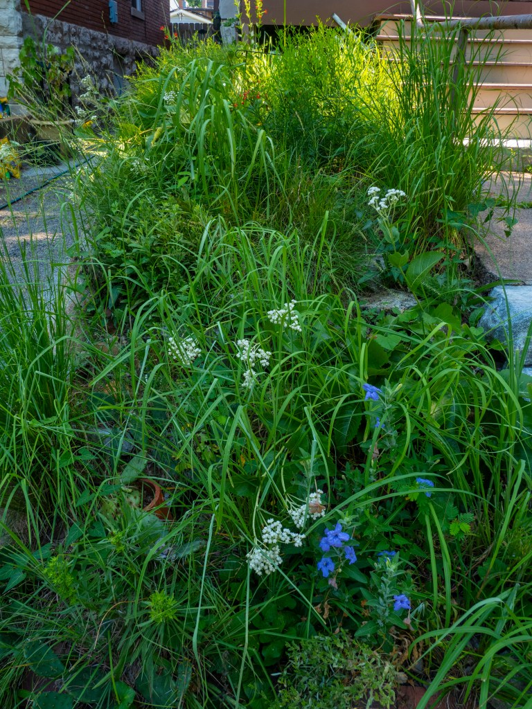 Touching grass is a phrase with really apt, literal meaning that resonates deeply with today’s internet generations. If someone says ‘go touch grass’ – it literally means go touch grass. It means to turn off the digital world and leave the house. To find a park or natural park, and do real things in the real world. To ground oneself in the here and now. Shocking as it may sound to older generations, a lot of social media natives really do have to be reminded to do this. The addictive nature of watching the world burn on our phones can spiral destructively for hours unless proactively interrupted. A native ecosystem accomplishes this ‘grounding’ thing very powerfully. Ben spoke of this as a very real benefit to the yard. “You can go read the news and be like ‘Jesus f-ing Christ, now we’re at war, that’s wonderful.’ You know? It’s dark. And then you can go outside and be like ‘oh look, a butterfly!’ It’s very therapeutic.”